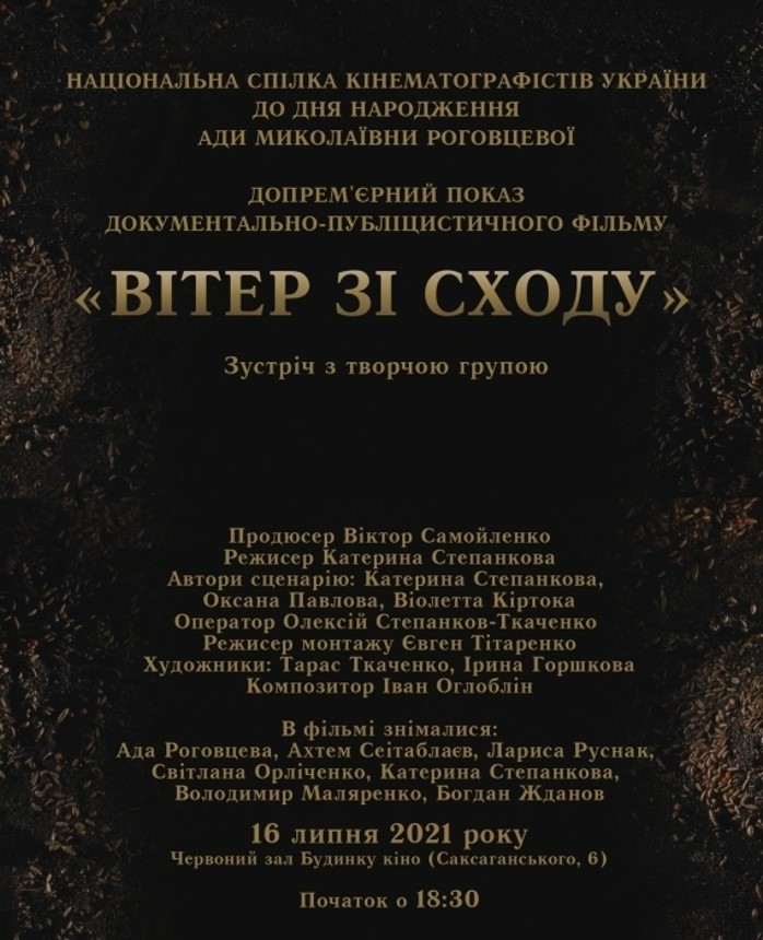Фільм було презентовано 16 липня 2021 року у Національному Будинку кіно, в день народження Ади Роговцевої — народної артистки України, Героя України, яка стала символом і героїнею фільму.